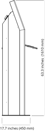 - Rozmiar kiosku: 63,3″ x 23,6″ x 14,1″ (1610 mm x 600 mm x 360 mm)